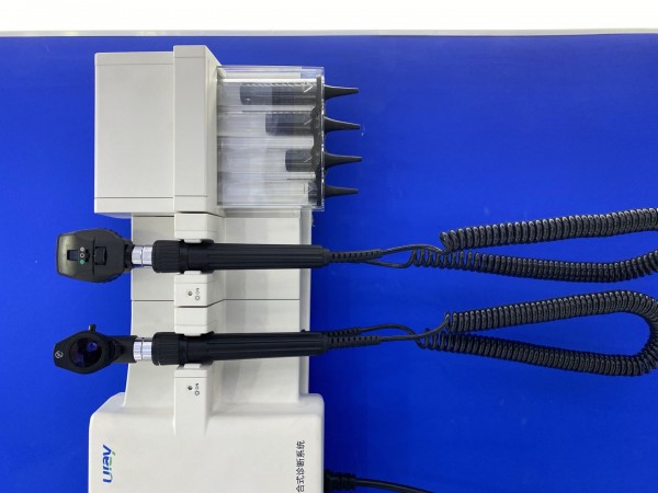2.一体化结构设计,集成五官诊断系统、生命体征诊断系统、和病例管理系统。壁挂式不占用空间,或使用配套支架方便移动。