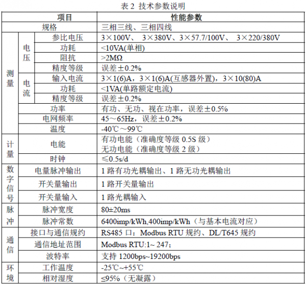 2 工业能耗管理云平台导轨式三相电能表功能列表