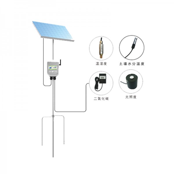 温度、湿度、光照强度、CO₂浓度、土壤温度、土壤水分 |