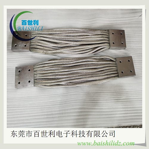 非标定制大电流铜绞线软连接是用绞线作导体、两端选用铜管、铜管表面镀锡处置、接头标准按客户需要生产、在通过一起处理‘做成软连接、软接地、导电率高、抗疲劳能力强、首要使用于各种高压电器、通信设备、真空电器、矿用防爆开关及汽车等相关产品做软连接用、为解决常规冷捆绑加工制作方法带来的质量风险、可做电路原件中多方位摇摆及往复带电运动的导电装置。