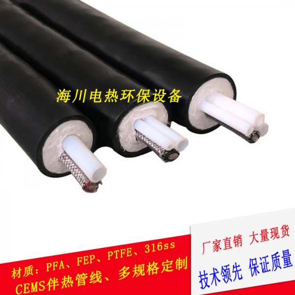 安徽海川电伴热材料有限公司研发制造的烟气伴热采样复合管伴热管TH2200,环保分析耐腐烟气伴热采样复合管是环保监测系统中的重要部件,它是由一组耐腐高性能树脂导管辅以高温恒烟气伴热采样复合管伴热管TH2200或自限温电伴热带(DXW,ZXW,GXW)或矿物绝缘(MI)加热电缆以及补偿线缆组成内芯,外加原料保温层,最后敷以聚乙烯(PE)或聚氯乙烯(PVC)保护外套复合而成。