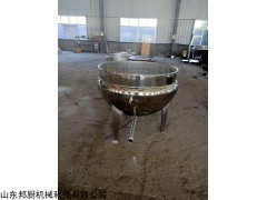 夹层锅体为一次冲压成型的半球形不锈钢锅体,采用蒸汽、液化气、天然气等加热形式,搅拌方式采用特殊的倾斜式传动,使用的行星式搅拌器与锅体充分接触,实现传动公转与自转的不整数传动比,使锅内无搅拌死角。使用的传动与密封结构,使传动部分与锅内洁净、卫生。采用变频调速动力,运行更平稳。另本机采用液压升降,翻锅运料,免拆装搅拌器,节省人力,降低劳动强度,是性能优良的食品加工设备。