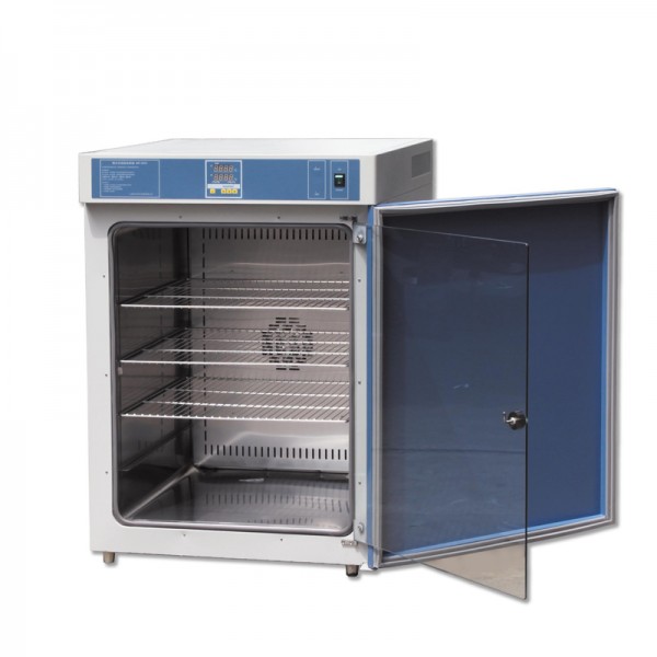 2、 水套式加热方式,采用优质磁性门封条和保温材料。双重门结构,内门是便于观察的玻璃门,内部搁架任意调节。