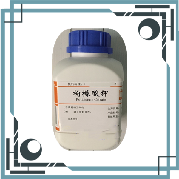 本品为2-羟基丙烷-1,2,3-三羧酸钾一水合物。按无水物计算,含C6H5K3O7不得少于99.0%。 【性状】本品为白色颗粒状结晶或结晶性粉末;无臭;微有引湿性。 本品在水或甘油中易溶,在乙醇中几乎不溶。 【鉴别】本品显钾盐与枸橼酸盐的鉴别反应(通则0301)。 【检查】酸碱度 取本品2.0g,加水25ml溶解后,加麝香草酚蓝指示液1滴;如显蓝色,加盐酸滴定液(0.1mol/L)0.20ml,应变为黄色;加氢氧化钠滴定液(0.1mol/L)0.20ml,应变为蓝色。 氯化物 取本品0.20g,依法检查(通则0801),与标准氯化钠溶液7.0ml制成的对照液比较,不得更浓(0.035%)。 硫酸盐 取本品0.20g,依法检查(通则0802),与标准硫酸钾溶液3.0ml制成的对照液比较,不得更浓(0.15%)。 易炭化物 取本品0.50g,加硫酸[含H2SO4 94.5%~95.5%(g/g)]5ml,置水浴中加热1小时,立即冷却,依法检查(通则0842),与对照液(取比色用氯化钴液0.5ml与比色用重铬酸钾液4.5ml混合)比较,不得更深。 草酸盐 取本品1.0g,加水1ml与稀盐酸3ml使溶解,加90%乙醇4ml与氯化钙试液4滴,静置1小时,不得发生浑浊。 水分 取本品约0.1g,精密称定,加无水甲醇70ml,搅拌5分钟,照水分测定法(通则0832第一法1)测定,含水分应为4.0%~7.0%。 重金属 取本品2.0g,加水10ml溶解后,加稀盐酸5ml与水适量使成25ml,依法检查(通则0821第一法),含重金属不得过百万分之十。 砷盐 取本品1.0g,加水23ml溶解后,加盐酸5ml,依法检查(通则0822第一法),应符合规定(0.0002%)。 【含量测定】取本品约80mg,精密称定,加冰醋酸20ml与醋酐2ml,加热使溶解,放冷后,加结晶紫指示液1滴,用高氯酸滴定液(0.1mol/L)滴定至溶液显蓝色,并将滴定的结果用空白试验校正。每1ml高氯酸滴定液(0.1mol/L)相当于10.21mg的C6H5K3O7。 【类别】碱性钾盐。 【贮藏】密封保存。