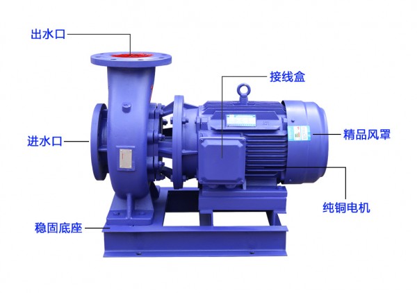ISW型卧式管道泵启动后,泵轴带动叶轮一起高速旋转,迫使预填充在叶片之间的液体旋转。在惯性离心力的作用下,液体从叶轮中心径向移动到外周。液体在流过叶轮的运动过程中获得能量,静压能量增加,流速增加。当液体离开叶轮并进入泵壳时,由于壳内流道的逐渐膨胀,液体会减速,部分动能转化为静压能,切向流入排放管。ISW型卧式管道泵壳体不仅是收集从叶轮流出的液体的部件,而且还是动力传递装置。当从叶轮的中心向外周投掷液体时,在叶轮的中心形成低压区域,并且由于液体之间的总势能差而将液体吸入叶轮的中心。依靠叶轮的连续运转,液体被连续地吸入和排出。由ISW型卧式管道泵中的液体获得的机械能转化为静压能的增加。