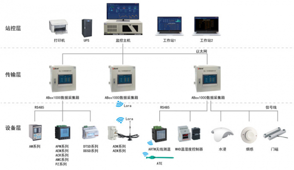 4.安科瑞电力监控系统电能质量分析系统架构系统可完成对变配电室内所有智能设备完成数据交换,能实时监测变电站内变压器、断路器等重要运行设备的运行状态;实时监测变配电室内各回路的运行数据及环境温度等数字量;通讯管理单元与厂内局域网连接,把数据传至服务器。