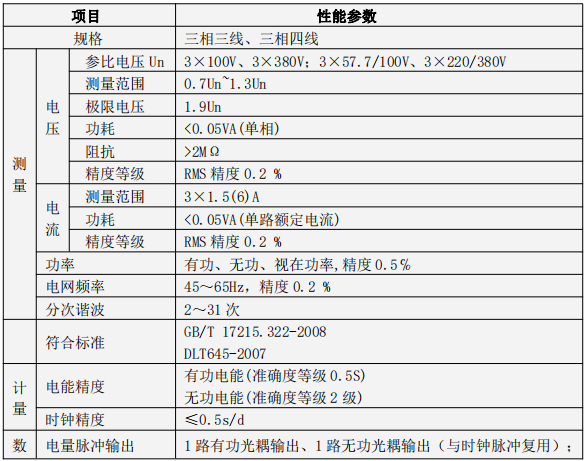 3 安科瑞0.5S级三相复费率电能表技术参数