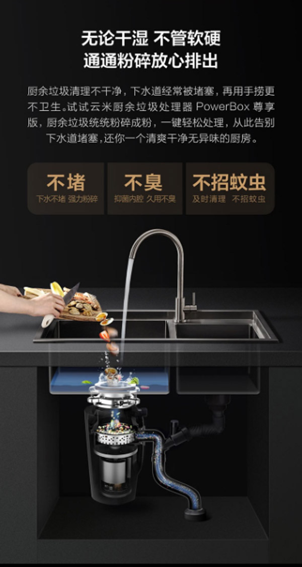 品牌: 云米(VIOMI)商品名称:VIOMI/云米 垃圾处理器厨房厨余粉碎机处理机家用 食物湿垃圾处理机VXRD-02 (包安装)全面升级尊享版 6级精细研磨商品编号:67204923906店铺: 云米卫浴旗舰店商品毛重:8.3kg商品产地:中国大陆电机类型:直流型是否可连接洗碗机:可连接洗碗机容量:1-1.2L(含)开关类型:无线开关
