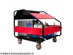 高压水射流清洗机是高压水射流清洗技术的核心设备。其充分将物理清洗技术广泛应用于石油、钢铁、石化、化工、电力、油脂、制糖、制药、建筑、市政 等领域的管道、热交换器及各种工业容器内外壁的清洗除垢作业。其主要原理是由高压泵产生高压水通过专用喷头、喷嘴等高压水转换成高压、高速水射流,对清洗 效率高、效果好、无腐蚀、零污染、劳动强度低,节约原材料、利于环保、通用性强等显著优点,是检修维护各类管道设备必不可少的专用工具和得力助手。