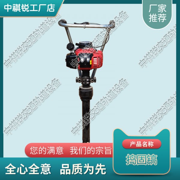 中祺锐生产销售的手持震动捣固镐采用机与捣固棒直接连接的设计,主要由机、减振装置、传动轴、振动体和手把组成。其工作原理为:机经离合器、软轴带动偏心铁,产生振幅实现捣固作业。