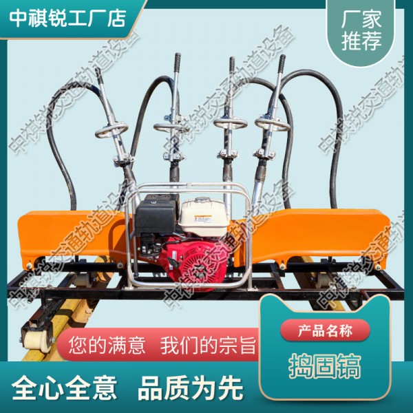 液压捣固机是用于是铁路线路工务维修对除道岔外的线路进行枕下道喳捣固机的机械,可利用列车间隔时间作业,不需要封锁区间。配用内燃机或电动机作动力,液压传动、每台机器一人操作,人工推行。设有下道架,下道后不侵“限界”。