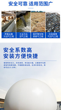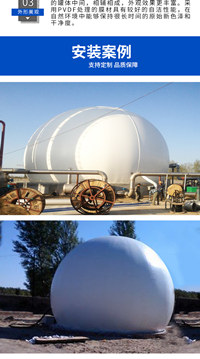 4.折叠结构简单重量轻,双膜沼气柜自重轻,运输轻松,安装维修简便。用于一体化气柜时安装在反应器上方,节省地基和反应器顶盖成本。
