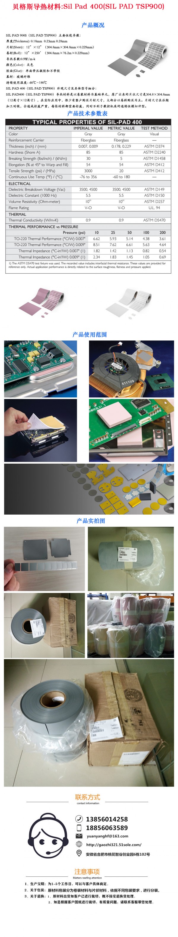目前,公司正积极着手拓展国外市场,并在东南亚市场已初具规模,公司自创立以来,坚持“质量为本、顾客至上”的原则,一直以来公司的产品在质量、价格、销售服务和信誉各方面都深受广大新老客户的一致好评。 公司长期加工和销售导热绝缘材料系列。现有:高志系列导热绝缘材料、贝格斯(Bergquist)、霍尼韦尔(Honeywell)、信越(ShinEtsu)等知名品牌。同时还长期销售:热转印材料、烫画材料、热熔胶、热熔粉、油墨、离型剂.我司还设有模切冲型加工车间,可为满足顾客对不同产品的规格型号及形状的要求,更好的配合客户的生产。 公司树“品质为真”的信念,愿以优质的管理,优质的服务,在公平公正的基础上,为广大客户提供多种选择。