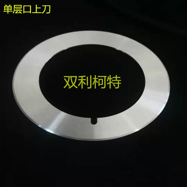 主要用于纸张,薄膜、金、银箔、铜箔、铝箔、无纺布、布、胶带、磁带等物品的分切,要求刀片切断阻力小,耐磨性大。选料:9CrSi、Cr12Mov、W6Mo5CrV2、W18Cr4V等。