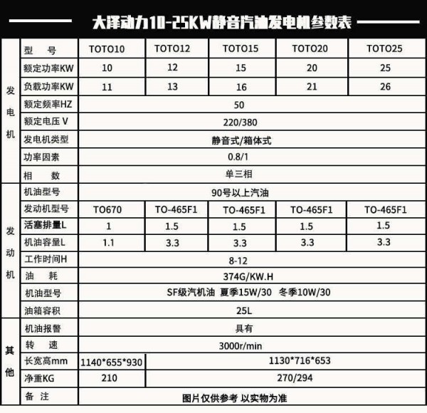 大泽动力发电机具有起动性能优良、静音25千瓦汽油发电机电压稳定、运行可靠、低排放、低噪音,维护方便等优点,设计先进,性能优良,体积小,重量轻,噪音小,选用性强此外,大泽系列发电机还有良好的经济性,良好的高原适应能力。被广泛应用于国防、车辆、船舶、工程机械、发电机组,并以其体积小、重量轻、抗突加负载能力强、噪音低、经济可靠等特点被认可。