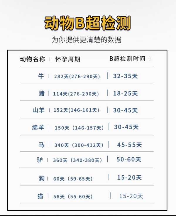 在动物超声系列中我们自主研发的掌上兽用B超,采用机械散扫和电子扫描,科技含量高、实用性强、使用方便。公司现有专用B超,猪用背膘测定仪、猪用妊娠检测仪、牛用肌腱测定仪、牛用妊娠检测仪、羊用妊娠检测仪等设备。在兽用超声领域我们自主研发了系列全数字掌上兽用B超,大量采用表面安装技术(SMT)和可编程器件(FPGA)。产品集成化程度高,可靠性强,质量稳定。仪器应用微机控制和数字扫面变换器(DSC),采用数字波束合成(DBF)、实时动态孔径成像(RDA)、实时动态声速变迹(DRA)、实时琢点动态接受聚焦(DRF)等技术,整机图像清晰、稳定、分辨力高。适用于马、牛、羊、猪、猫、狗等动物查孕、背膘测定、肌腱测定等诊断。为畜牧养殖业提供了高科技养殖手段。仪器采用交流适配器和内置锂离子可充电电池相结合的供电方式,整机体积小,重量轻,使用方便。