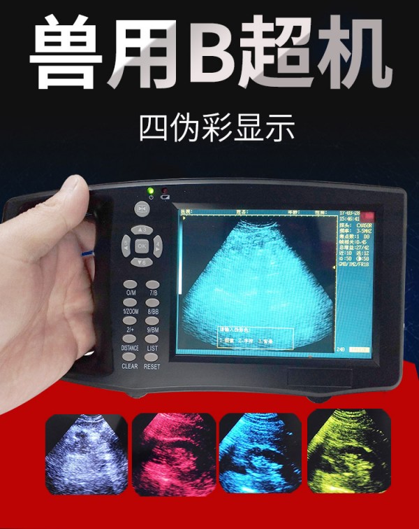 在动物超声系列中我们自主研发的掌上兽用B超,采用机械散扫和电子扫描,科技含量高、实用性强、使用方便。公司现有专用B超,猪用背膘测定仪、猪用妊娠检测仪、牛用肌腱测定仪、牛用妊娠检测仪、羊用妊娠检测仪等设备。在兽用超声领域我们自主研发了系列全数字掌上兽用B超,大量采用表面安装技术(SMT)和可编程器件(FPGA)。产品集成化程度高,可靠性强,质量稳定。仪器应用微机控制和数字扫面变换器(DSC),采用数字波束合成(DBF)、实时动态孔径成像(RDA)、实时动态声速变迹(DRA)、实时琢点动态接受聚焦(DRF)等技术,整机图像清晰、稳定、分辨力高。适用于马、牛、羊、猪、猫、狗等动物查孕、背膘测定、肌腱测定等诊断。为畜牧养殖业提供了高科技养殖手段。仪器采用交流适配器和内置锂离子可充电电池相结合的供电方式,整机体积小,重量轻,使用方便。
