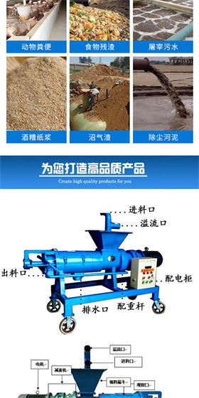 粪便固液分离机做为鸡、猪、牛、马等各类动物粪便设备以外,还可以做酒糟、药渣、淀粉渣、酱渣、餐厨垃圾、屠宰厂等高浓度有机污水的渣液分离设备。