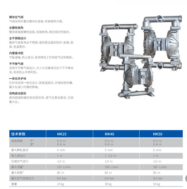 MORAK系列气动隔膜泵具有以下特征: