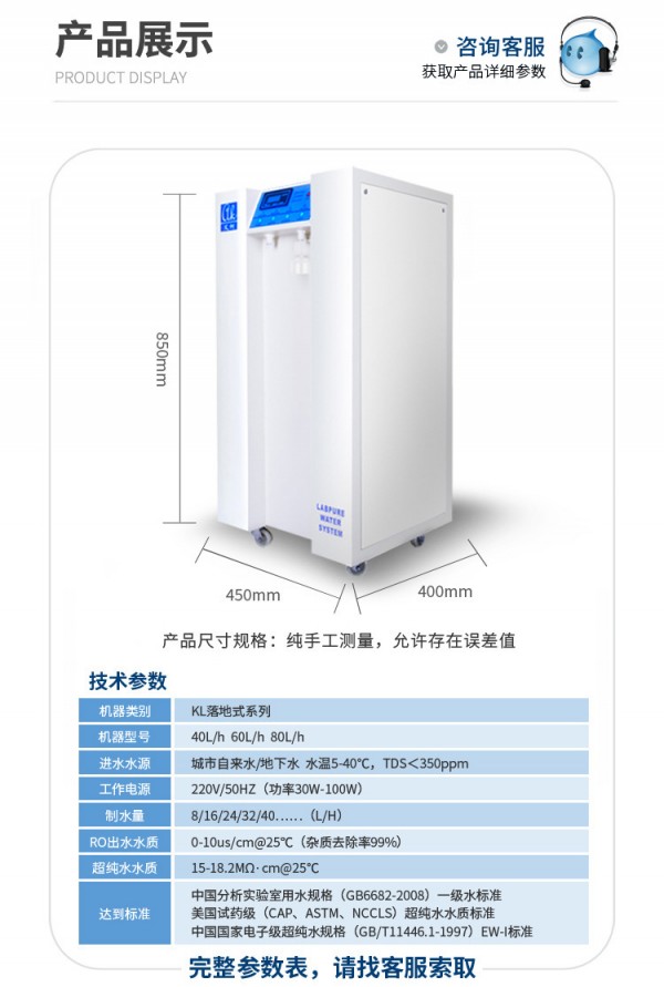 2.超纯水即用即取,可连续产水,继续用进行存储造成纯水二次污染,提高了用户的用水质量,操作更加方便快捷。