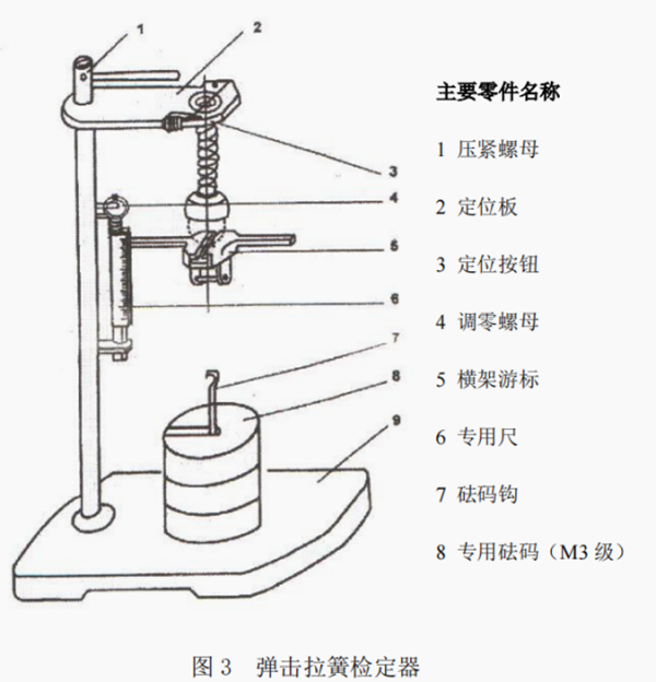 弹击拉簧检定仪的构造和主要零部件名称如图 3 所示。