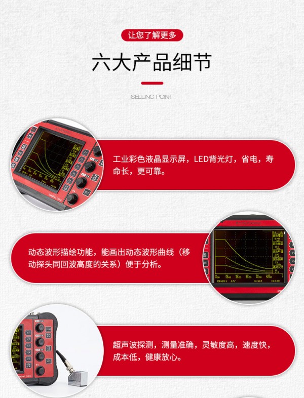 仅 37mm,重量含电池约 950 克,非常轻巧,价格接近模拟机,使用方法又接近模拟机,非常适合模拟机用户升级换代或首次添置数字式超声波探伤仪用户。