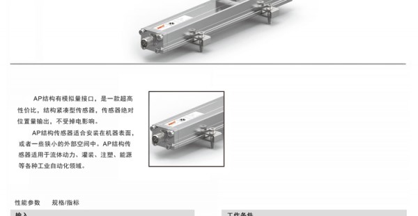 AP外置经济型传感器特点:●超高性价比;●易拆易装的安装方式;●非接触式测量,稳定性高;●可完全替换国外同等产品;●温度环境适应能力强;●绝对值位移测量不受掉电影响。