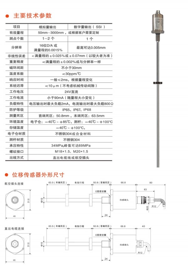公司目前拥有十二个系列,六十多个品种的位移传感器产品。产品技术上不断创新,品质上均经过严格的实验与应用测试以及出厂检测,从性能指标、到产品的稳定性与耐用性均达到国外同级水平。