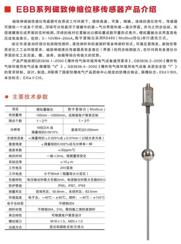 EBB 拿度模拟量/数字量/Modbus485/SSI磁致伸缩直线位移传感器油缸]信息由会员[