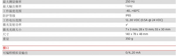 产品特点:● 测量范围0 ~ 500m● 最高测量频率250赫兹● 测量精度3毫米● 串行接口输出● 模拟量输出精度(0.1%)● 两个数字量输出● 一个错误信号输出● 一个数字信号输入● PROFIBUS总线(可选)● PROFINET,EtherNet/IP,EtherCAT(可选)● 防护等级IP65● 工作温度-40...+60℃