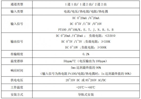 输入:1 路 4-20mA,输出:1 路 4-20mA,工作电源:无