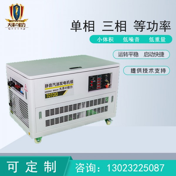 20kw汽油发电机动力强劲 启动快捷 动力启动快捷、运转平稳、震动小、油耗省、体积小、结构紧凑、点火稳定可靠等优点,大大提高您的工作效率,户外施工的理想伴侣!大泽动力汽油、柴油发电焊机真的很给力,独享一件起格,想了解更多产品信息,欢迎来电咨询恰谈!! 我厂生产的发电机/发电焊机/氩弧焊发电电焊一体机具有动力启动快捷、运转平稳、震动小、油耗省、体积小、结构紧凑、点火稳定可靠等优点,大大提高您的工作效率,户外施工的理想伴侣!大泽动力汽油、柴油发电焊机真的很给力,独享一件起格,想了解更多产品信息,欢迎来电咨询恰谈!