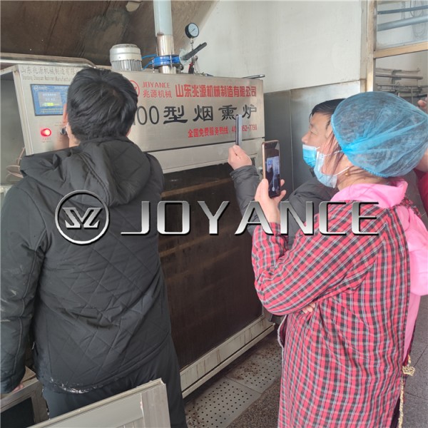 烟熏豆干的机器特意针对了环保问题进行了一个改进,主要适应于加工红肠、腊肉、腊肠、熏鸡、熟食、豆腐干等。操作也非常的方便,还要蒸煮,烟熏,烘烤上色等功能,适应于多种产品,解决了传统工艺带来的烟雾量大的环保问题。