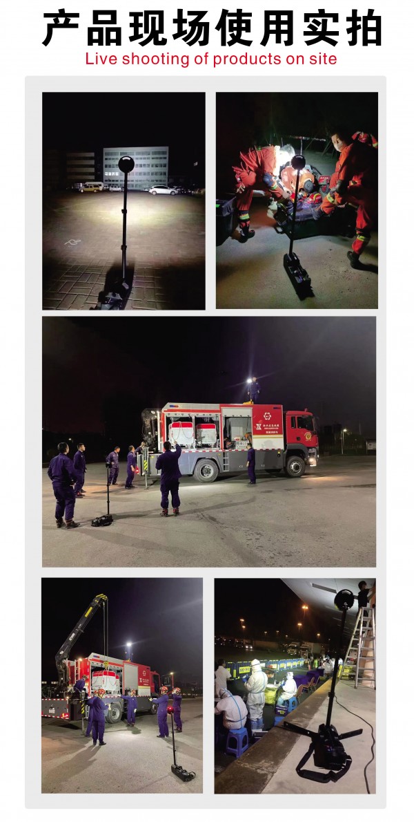 2、重量轻,整体重量6Kg,可手提、肩背,携带更轻便, 最大升起高度1.2米,可作固定照明使用,亦可折叠作探照灯使用。