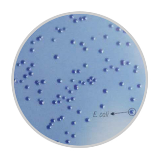 HiMedia的大肠菌群鉴别显色琼脂是基于大肠菌群的计数培养基——M-FC琼脂。该培养基结合莫能菌素添加剂能提高受损大肠菌群的回收率。培养基含有乳糖为发酵糖。含有莫能菌素和脱氧胆酸钠,能抑制革兰阳性菌。培养基含有的苯胺蓝为培养基的指示系统。显色混合剂诱导大肠杆菌产生β-葡萄糖醛酸酶,并帮助受损的大肠菌群在选择因子存在时能够生长。