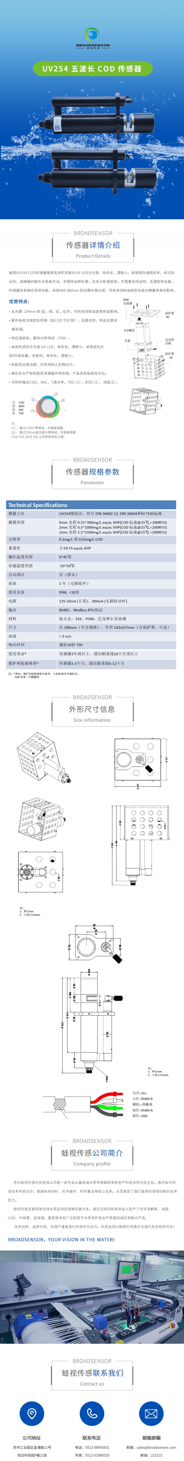 蛙视水质监测在线自清洁五波长COD传感器测试仪使用先进的深紫外 UV LED 冷光源,寿命长,漂移小。采用国际通用技术,经过验证的、高精确的紫外光吸收方法。无需样品预处理,反应分析速度快,不需要任何试剂、无需取样设备。