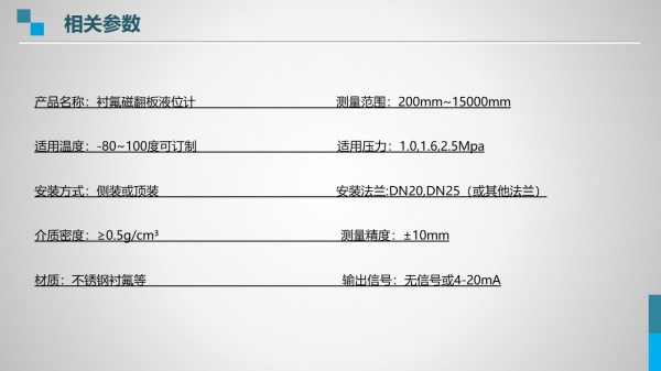 1)衬四氟防腐型磁翻板液位计产品特点: