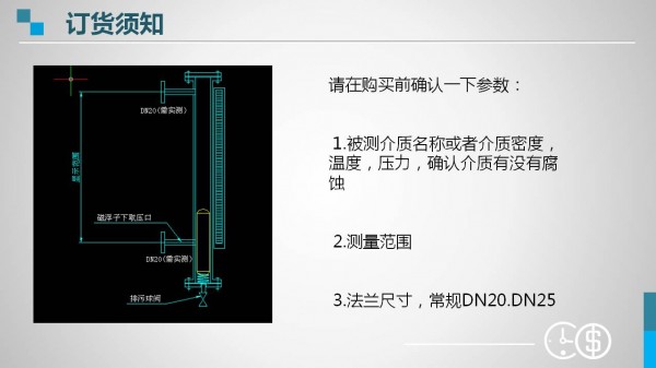 3、液位计进入运行前,应先打开上法兰气相阀,然后缓慢打开下法兰液相阀,使介质缓慢的流入筒体让翻柱(板)逐一跟踪指示。