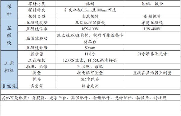动行程、观察视野、扎针范围可覆盖整个 4 英寸晶圆,可升级高温、射频、光