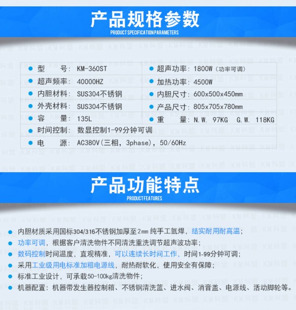 科盟超声波清洗机工业单槽五金主板清洗设备 产品特点: 使用自来水、纯净水;水性清洗剂或者无腐溶剂清洗; 大功率换能器清,可用肉眼观察到; 大屏数显,触摸控制,精准可调定时; 全不锈钢外壳与隔音盖子、内胆,精致做工更显高档; 冲压一体成型内槽,提升防漏水性能,更经久耐用。