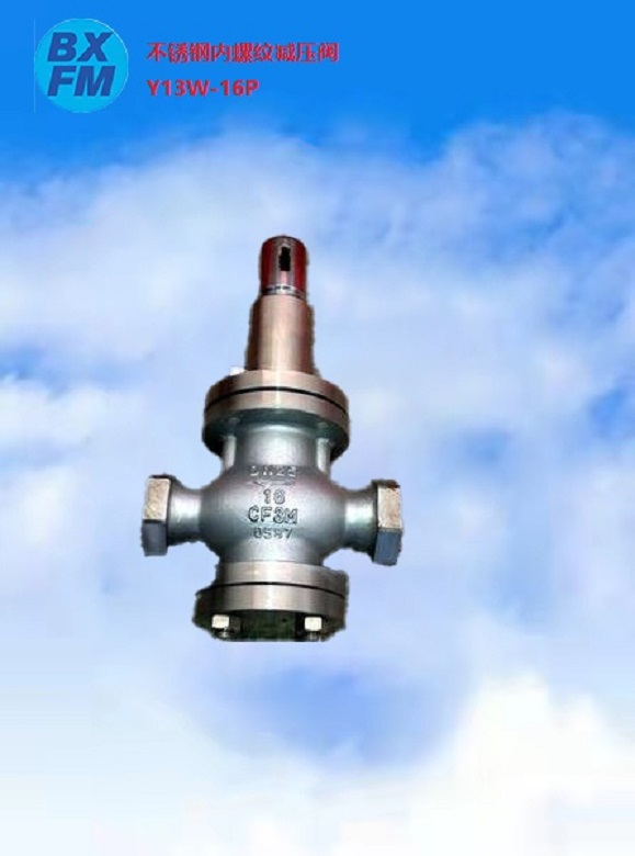 不锈钢内螺纹活塞式减压阀进口国标Y13W-16P的开关动作是由阀后压力进行控制,当压力感应器检测到阀门压力指示升高时,减压阀阀门开度减小;当检测到减压阀后压力减小,减压阀阀门开度增大,以满足控制要求。丝扣减压阀广泛应用于石油、机械、深冷、电子、化工、电力、冶金、天然气、食品等行业的调压要求。