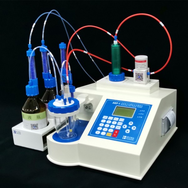 AKF-1N卡尔费休水分测定仪、快速卡氏水分测定仪设计有全新的高精度滴定组件和功能齐全但操作简易的人机界面。仪器的系统密闭性好,安全高效;灵敏度高、测量范围广、可用于准确分析固体、液体、气体样品中的结晶水、吸附水、游离水。AKF系列产品可广泛满足于石油、化工、制药、日用化工、食品、农业、实验室等诸多行业的含水量测定需求。