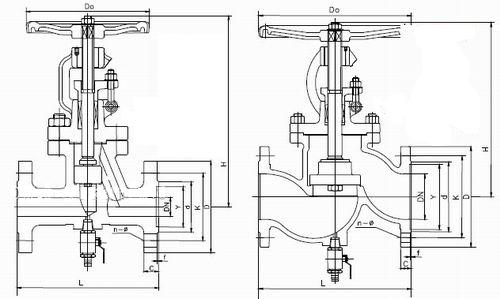 四、铸钢抗生素无菌法兰截止阀KJ41F外形及连接尺寸:
