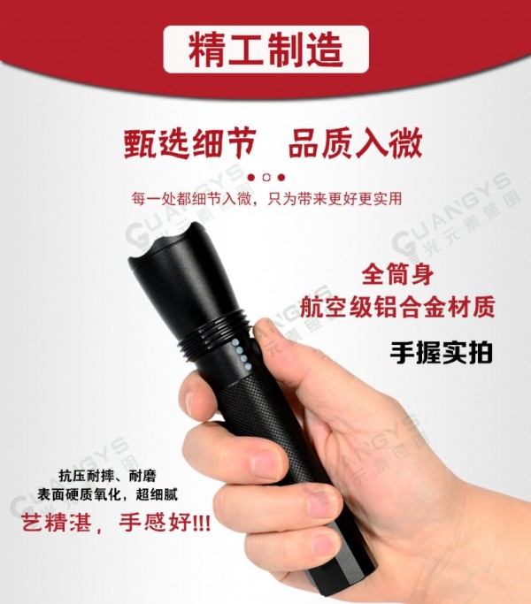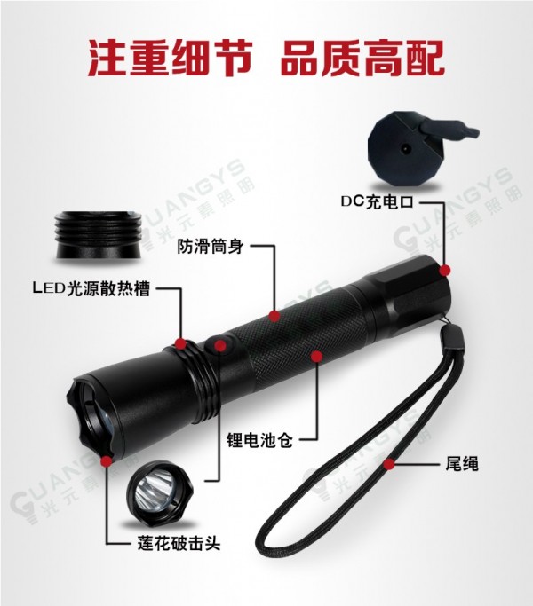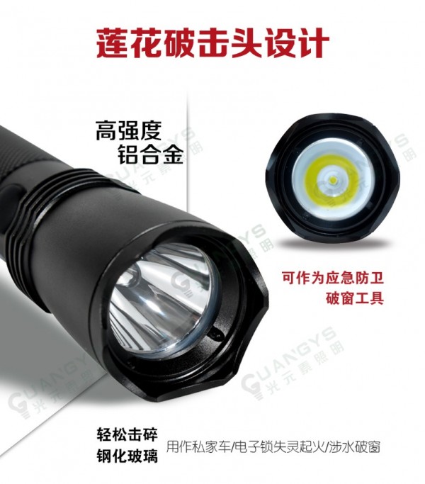 4、棱角形灯头设计,可作为应急的防卫工具,以备不时之需。