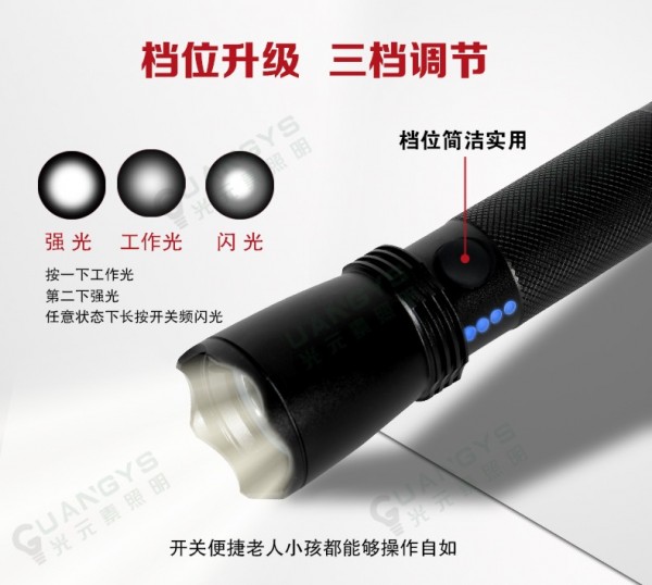 尚为ZSW2107多功能强光巡检手电筒具有工作光、强光、爆闪三档光,可作照明或远距离信号指示。爆闪除作为定位信号外,在夜晚,30米以内还能使人瞬间致盲,达到警戒和个人防卫作用。