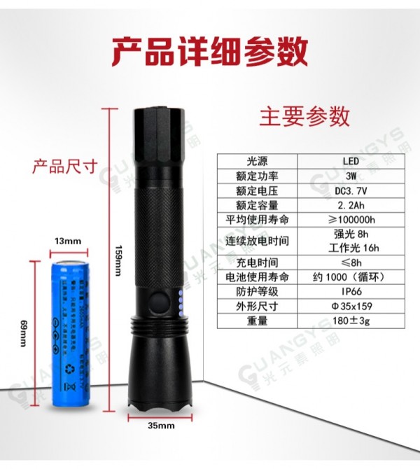 尚为ZSW2107多功能强光巡检手电筒1、光源采用绿色环保的大功率、高亮度白光LED,光源耗能少,使用寿命长达100000小时。2、反射器采用高科技表面处理工艺,反光效率高,灯具照射距离可达1000米以上,可视距离达100米以上。