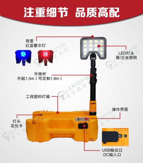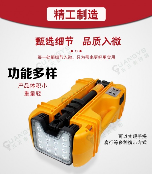◆轻便耐用:灯具体积小、重量轻,可以实现手提、背行两种携带方式。灯具也可以安装铁轨轮,方便用户在铁路单轨上移动;