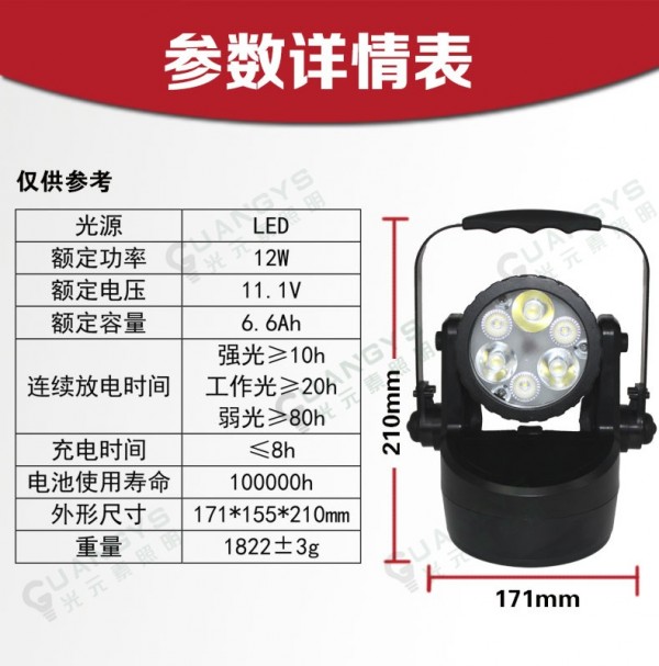 经济环保:华荣同款BAD309多功能手提磁吸防爆探照灯高能无记忆锂离子电池,充放电性能优良,并具有过充、过放和短路保护功能,自放电率低,无污染;