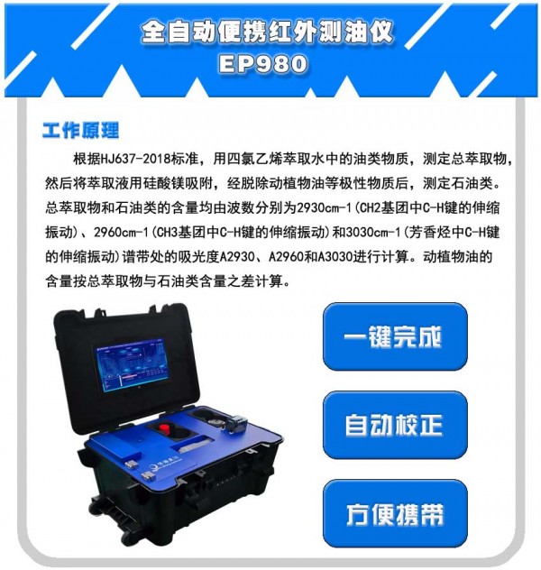 28.EP980全自动便携测油仪可以进行全自动总油石油类或动植物油检测,自动显示硅酸镁剩余量;