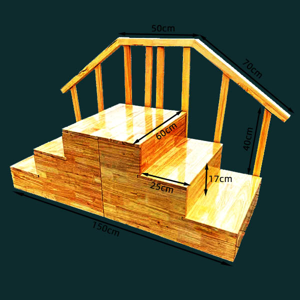双向楼梯:平台长50厘米×宽60厘米×高92厘米,全梯长150厘米,梯面宽25厘米×高17厘米×长60厘米,梯栏(从梯面计算)高40厘米。